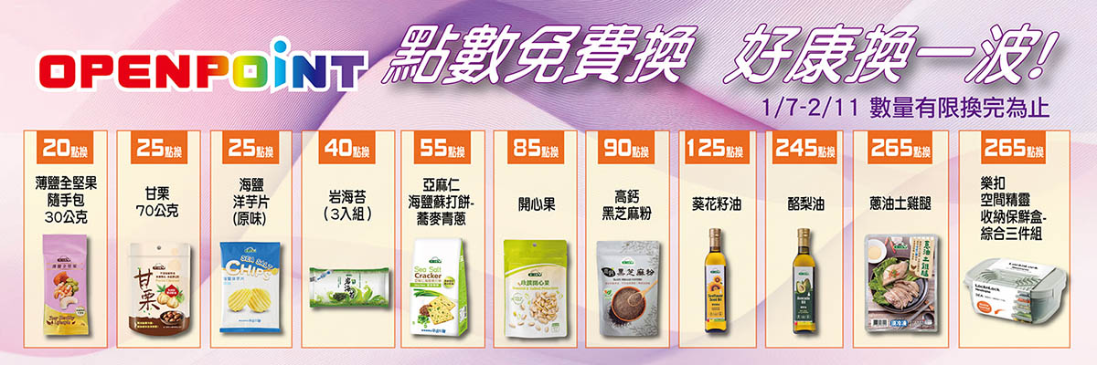 OPENPOINT點數85點免費換,請至點數換購區換購