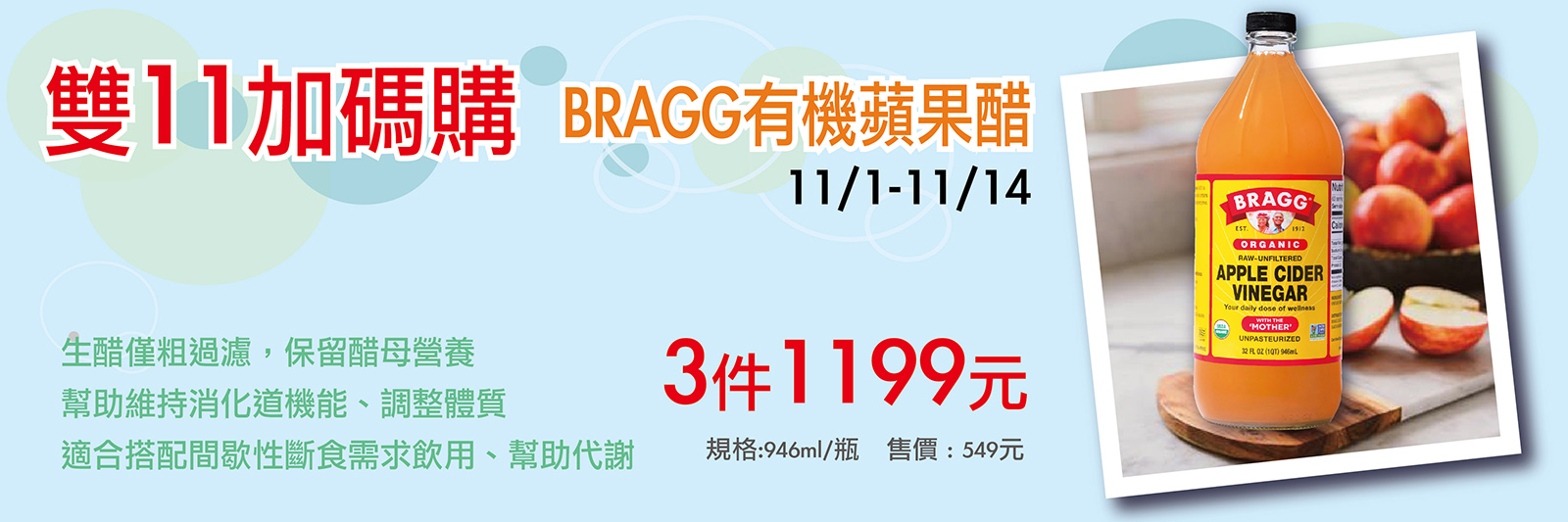 Bragg有機蘋果醋 946ml/瓶(三件組)