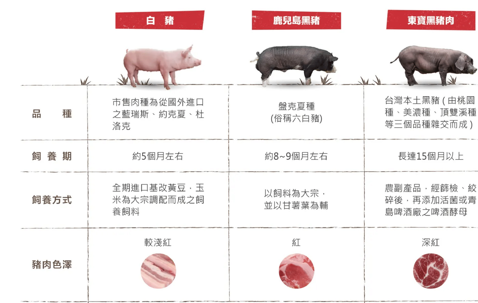 選用台灣原生種「六堆黑豬」,以自然方式與在充滿藝術的環境下培育豬隻,通過多項 SGS 品質檢測,是高品質的梅花肉片。