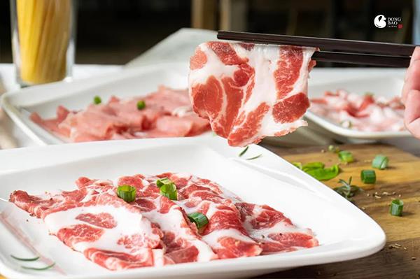 黑豬梅花肉質厚實,嚼感極佳且帶有甜味,大理石紋分布均勻,是肉中極品,梅花火鍋肉片川燙、快炒、燒烤都很美味。