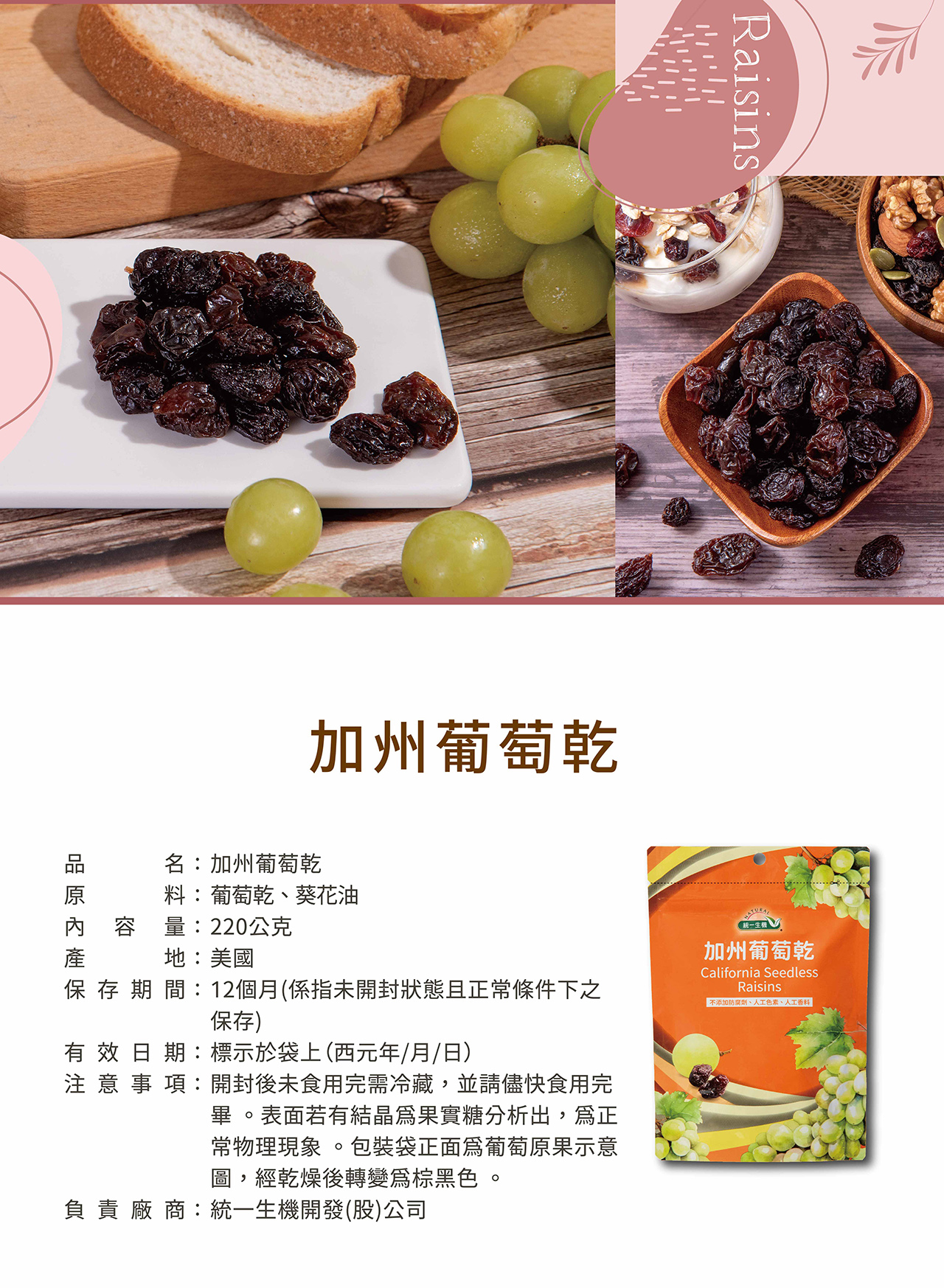 3.包裝袋正面為葡萄原果示意圖,經乾燥後轉變為棕黑色。