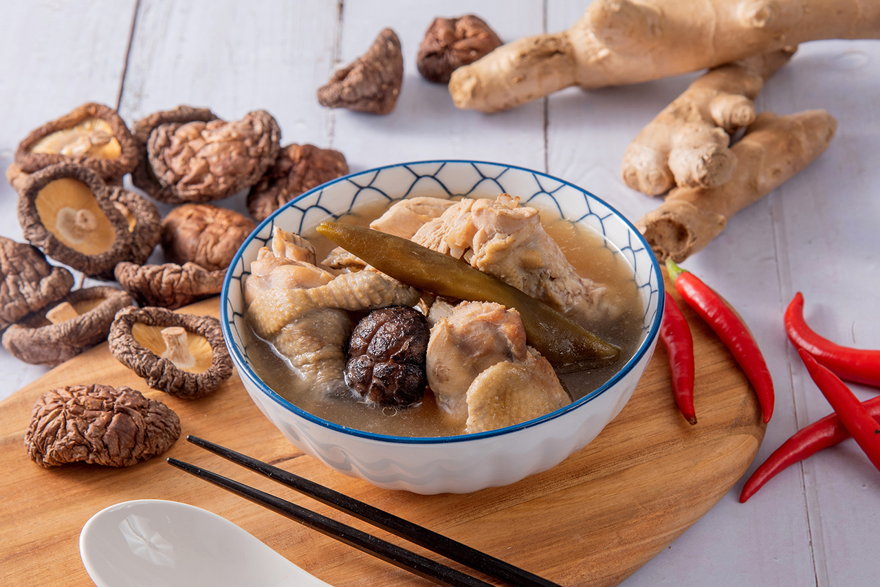 高湯[(雞高湯(雞骨、水、薑、蒜)、水、雞濃白湯(雞抽出物、水、酵母抽出物)、料理米酒、昆布抽出物、冰糖、鹽]、土雞肉、剝皮辣椒[剝皮辣椒(含氯化鈣)、水、非基因改造黃豆醬油、甘蔗液糖(糖、水)、鹽、酵母抽出物(酵母抽出物、鹽、葵花油)、香菇抽出物(糊精、香菇抽出物)、乳酸]、香菇、薑
