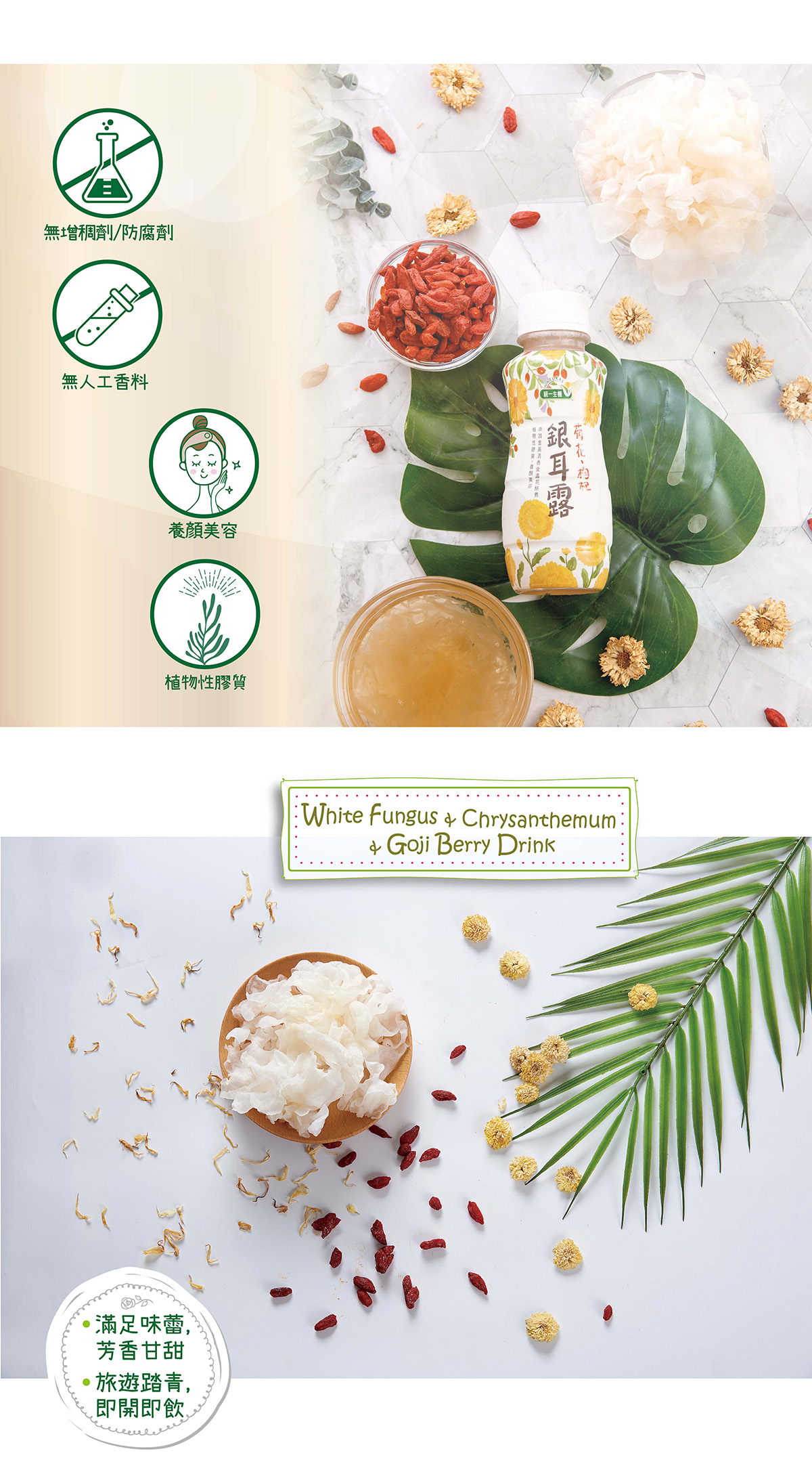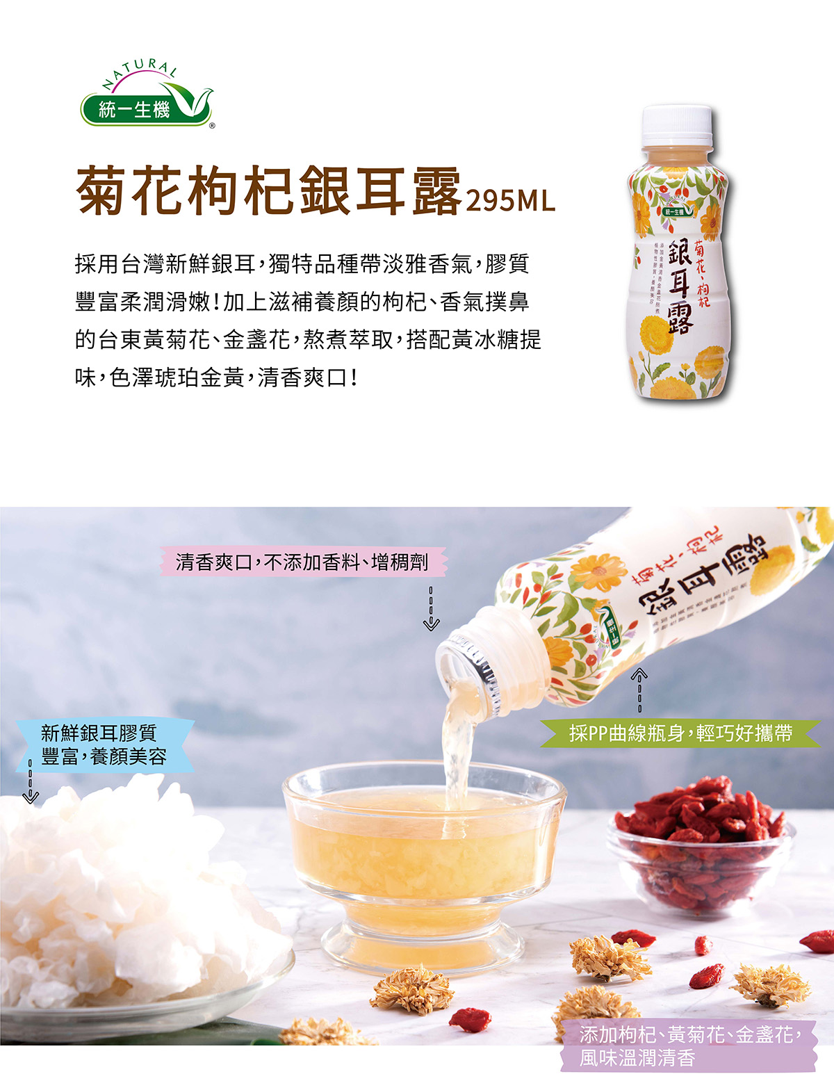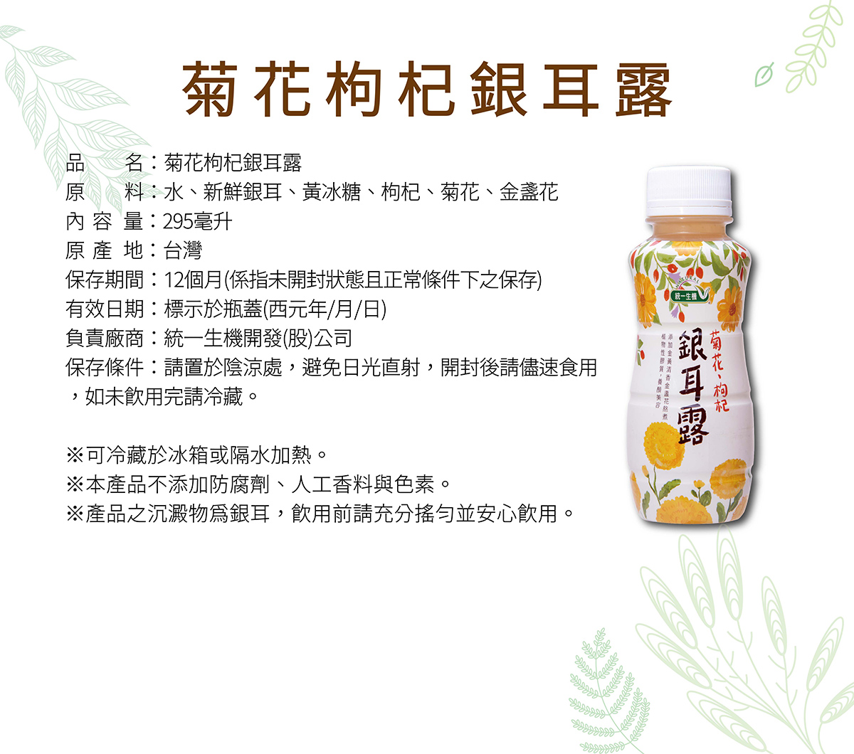 3.產品之沉澱物為銀耳,飲用前請充分搖勻並安心使用。