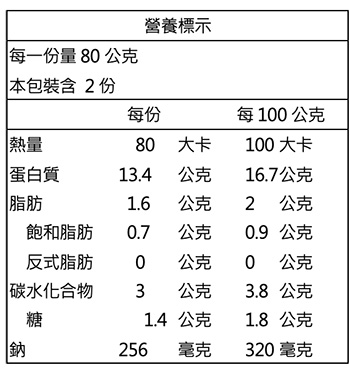 過敏原資訊:本產品含大豆及含麩質之穀物製品。(來自醬油)