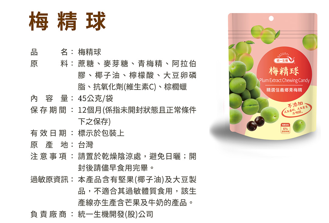 惜福區 > 梅精球*45G(袋裝)兩件組(商品效期2026/10/2)