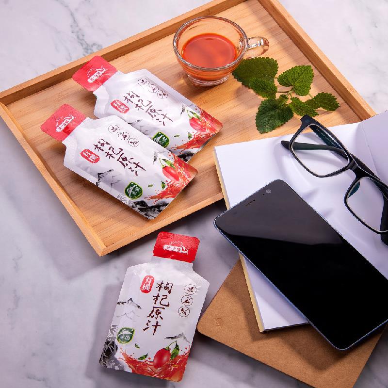 *軟袋隨身包,方便隨時補充營養,每包(30ml)枸杞汁,相當於90公克枸杞(約80顆)。